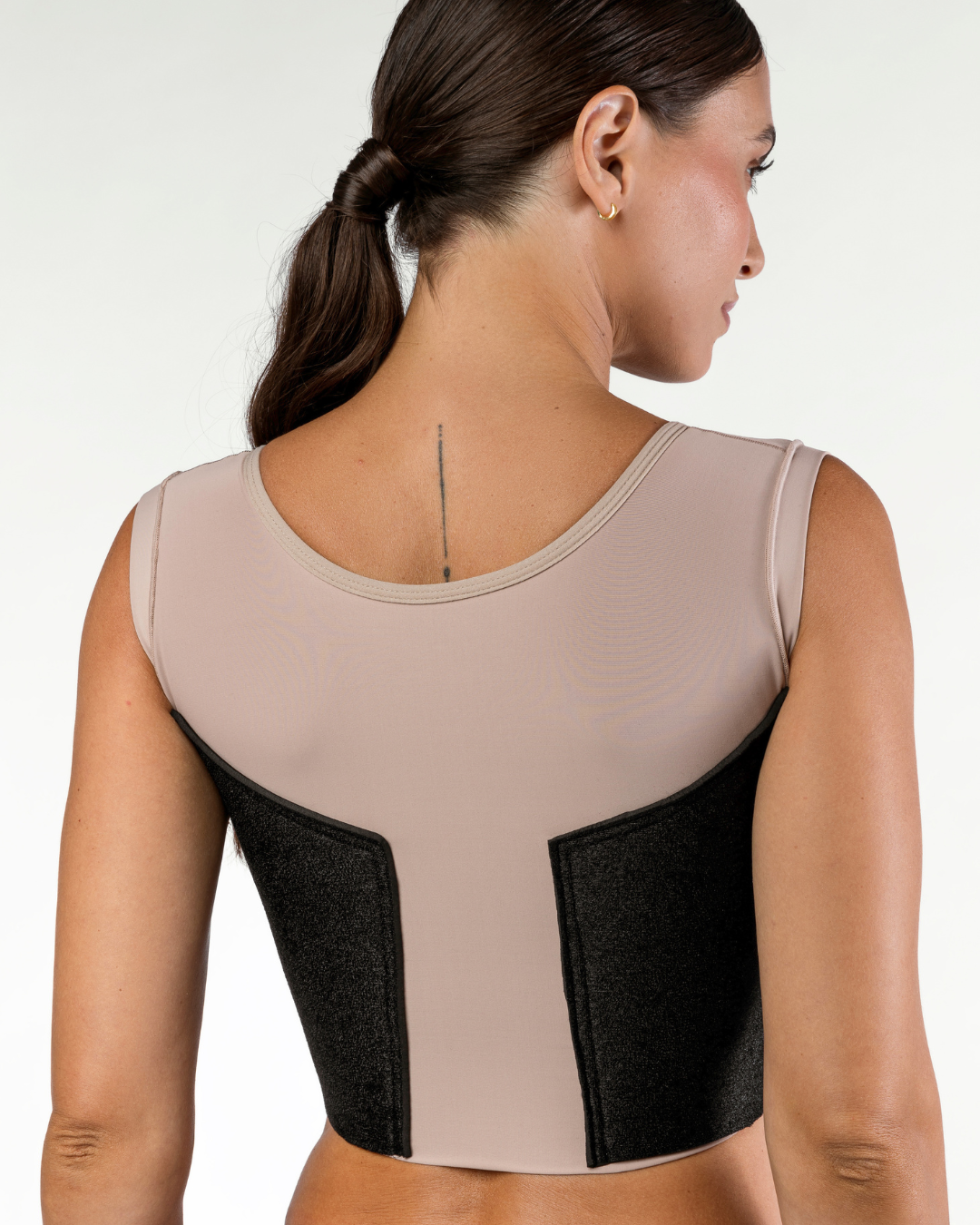 The proper compression level for a post‑operative area is between 20 and 30 mmHg. That’s why we developed a smart elasticity system within the fabric, delivering the ideal medium‑level compression recommended by top surgeons.